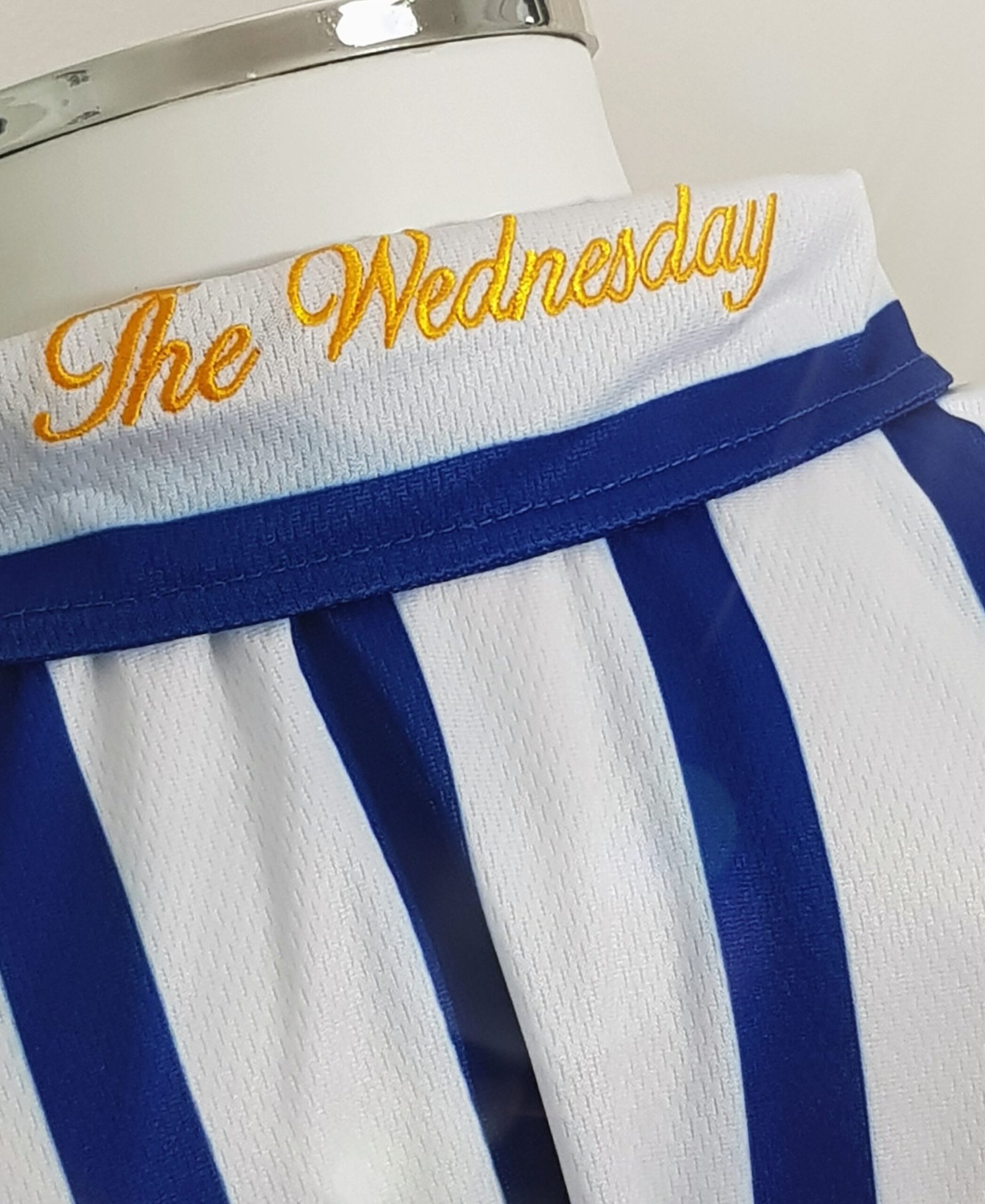 This is a retro edition of the first ever Wednesday shirt that featured stripes as per Historical Kits. Before hand, there were Blackburn esq and Celtic style Blue and White attempts before the stripes became prevalent.